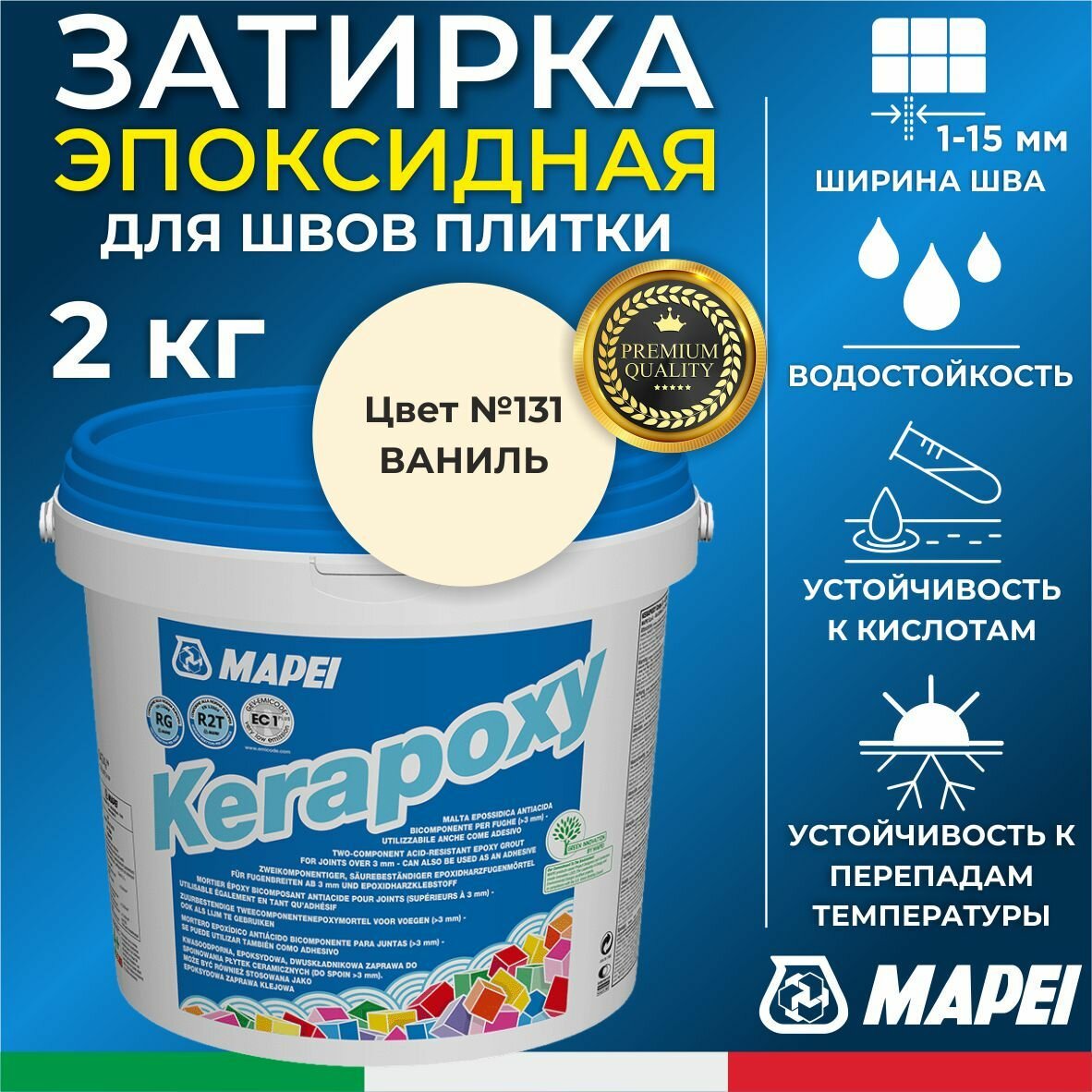 Затирка эпоксидная для швов KERAPOXY MAPEI керапокси мапеи № 131 ваниль, ведро 2 кг