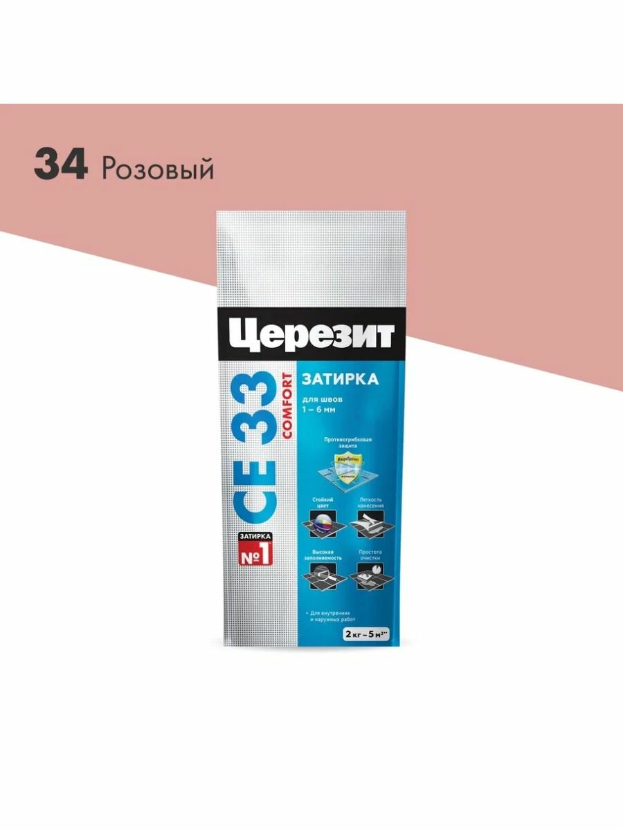 Затирка для Узких Швов 2кг до 6 мм Ceresit CE 33 Comfort Розовый 34 / Церезит СЕ 33 Комфорт.