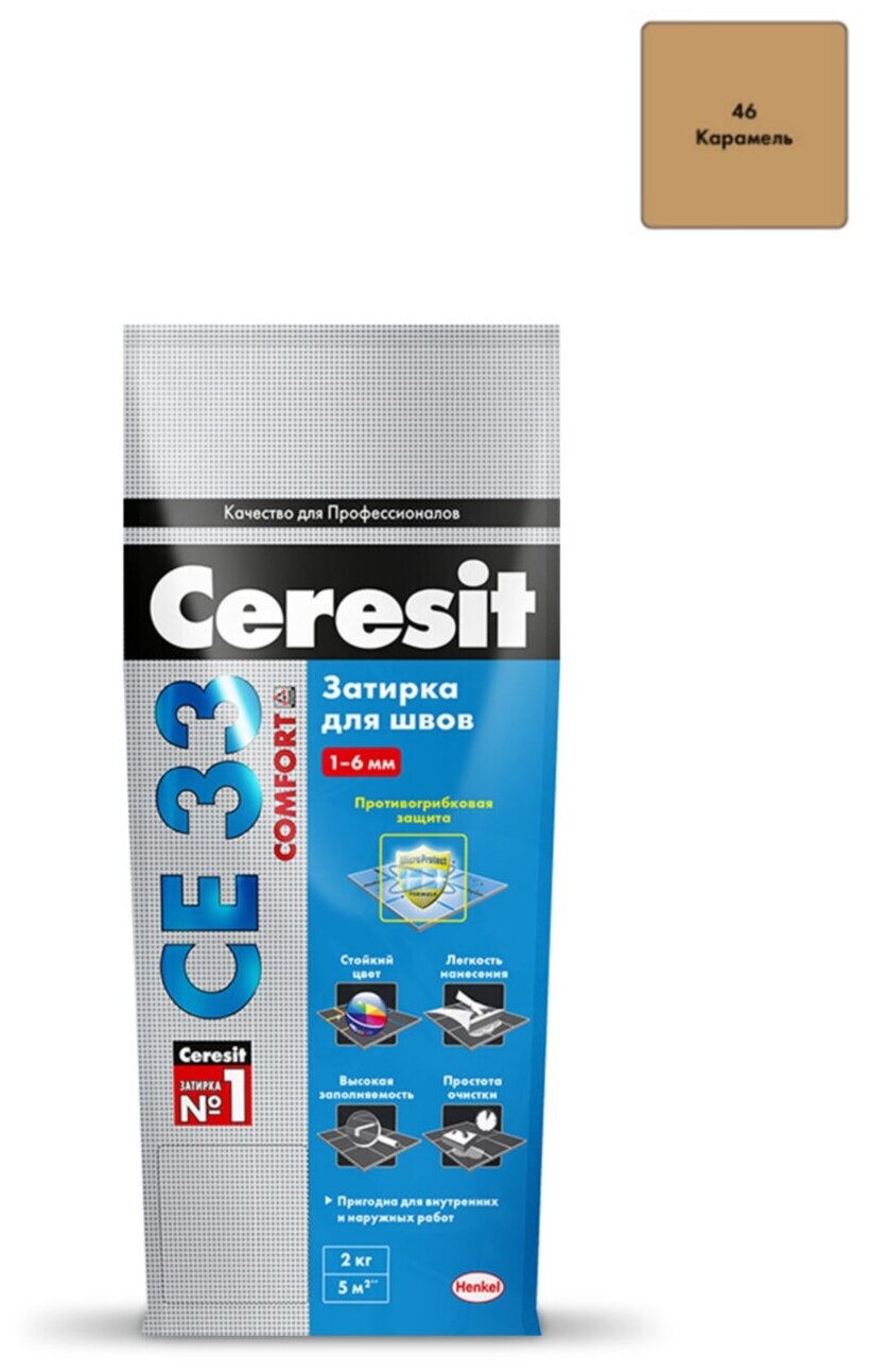 Церезит СЕ 33 затирка противогрибковая №41 натура (2кг) / CERESIT CE-33 Comfort затирка цементная для швов противогрибковая №41 натура (2кг)