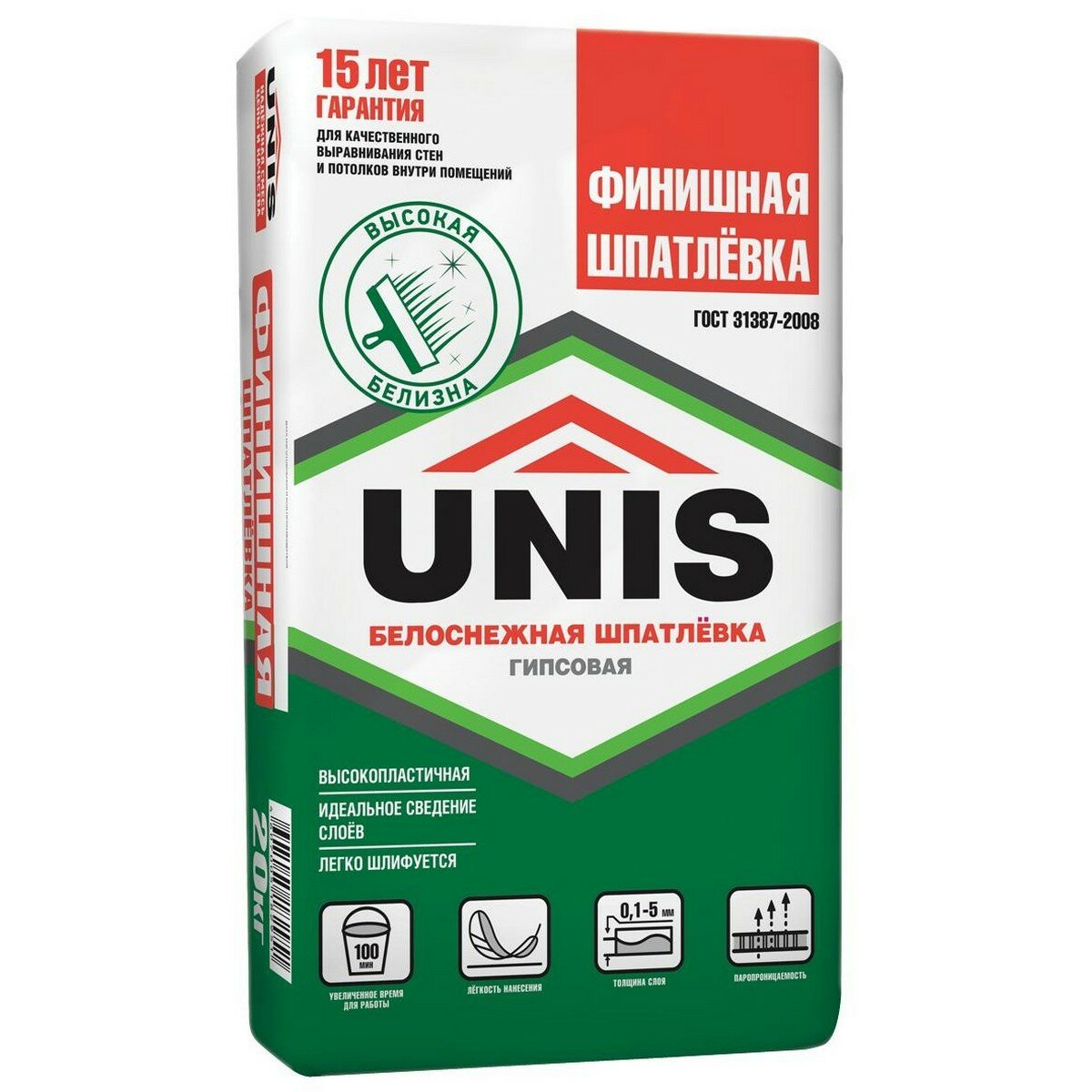 Шпатлевка Unis Финишная, белый, 20 кг интересное: