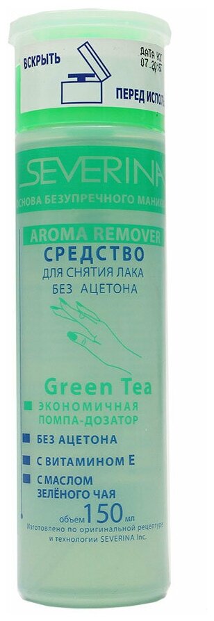 Severina, Aroma Remover, Green Tea, Средство для снятия лака без ацетона, помпа, 150 мл интересное: