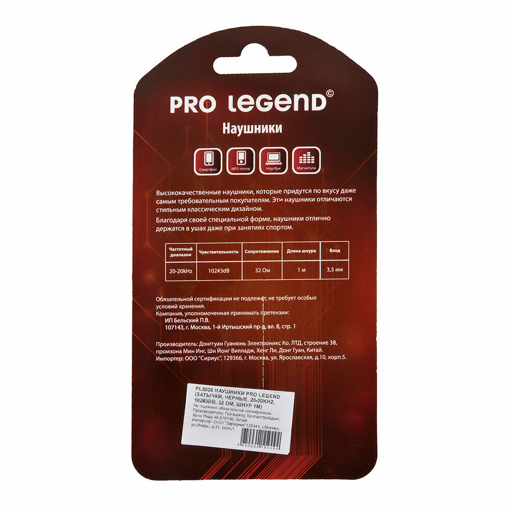 Pro Legend Наушники-вкладыши проводные Pro Legend Lite PL5000 Черный