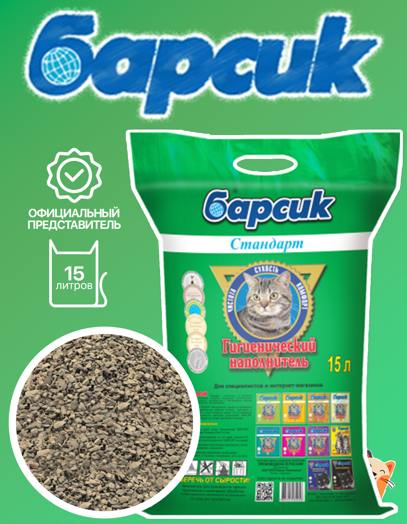 Барсик Стандарт: впитывающий наполнитель15л 12.5 кг