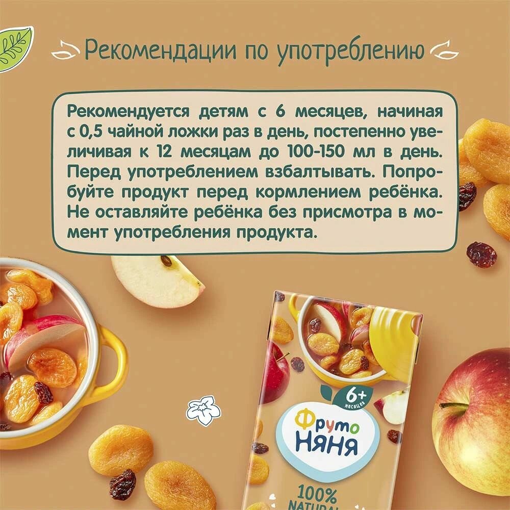 Компот ФрутоНяня из яблок, кураги и изюма с 6 месяцев 0,2 л 3 шт интересное:
