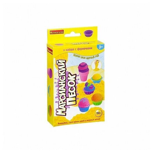 Набор игровой Вondibon "Марсианский песок", 150г жёлтый , 3 формочки ( горшочки), 1 вид.