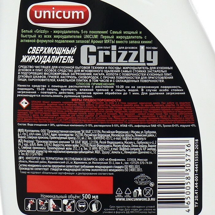 СохранитьUNICUM Жироудалитель гризли 500мл (Мята) интересное: