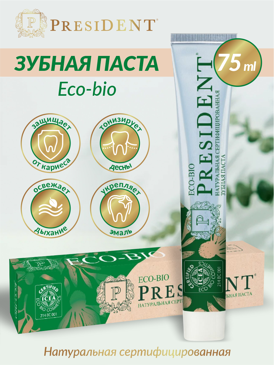 Паста зубная / PRESIDENT Eco-Bio 75 гр интересное: