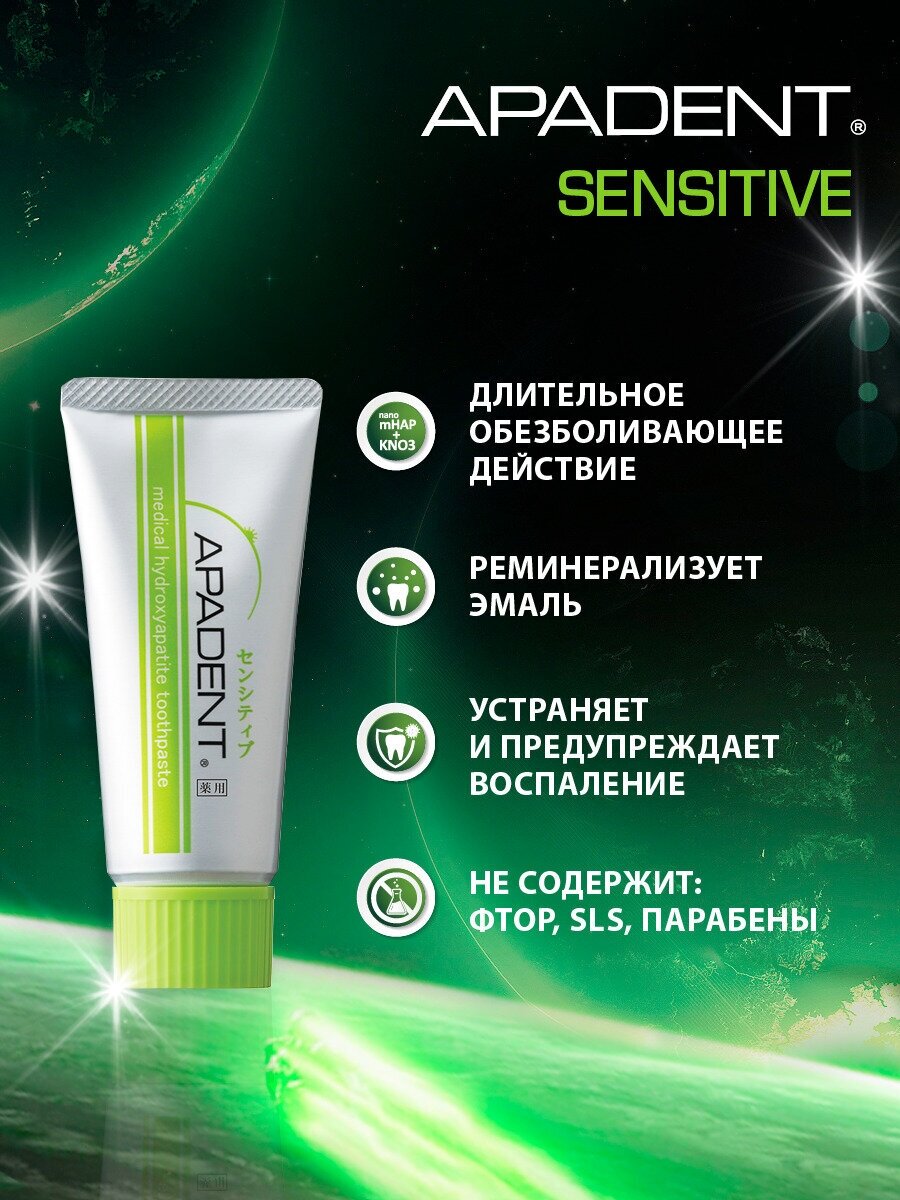 Лечебно-профилактическая зубная паста для чувствительной эмали Sangi Apadent Sensitive с нано-частицами гидроксиапатита, 60 г, Япония