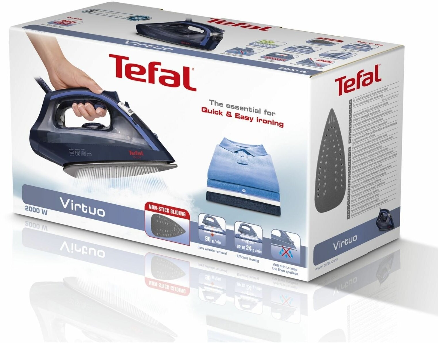 Купить Утюг Tefal Virtuo FV1713E0, 2000 Вт, паровой удар 90 г/мин, вертикальное отпаривание