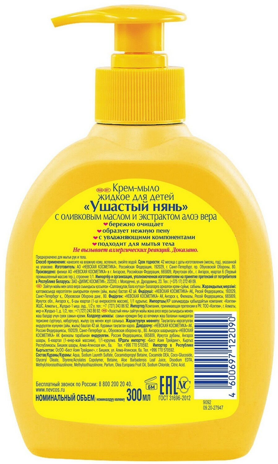 Детское крем-мыло "Ушастый нянь", с оливковым маслом и алоэ вера, жидкое, 300 мл