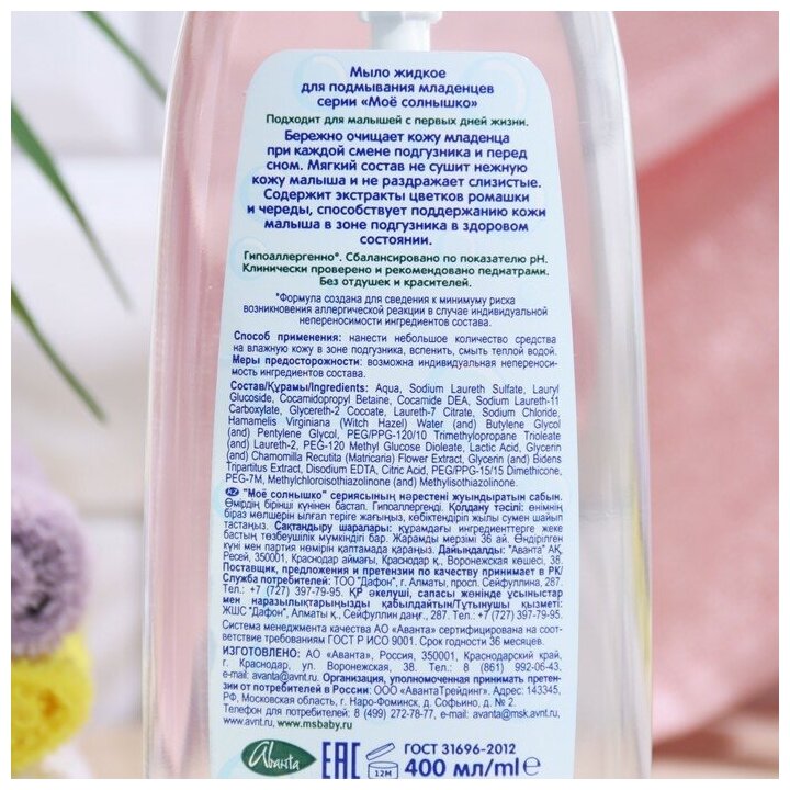 Мыло для подмывания младенцев Моё солнышко 400мл. 1 штука