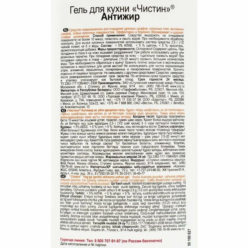 Купить Чистин Гель для кухни Чистин "Антижир", 300 г