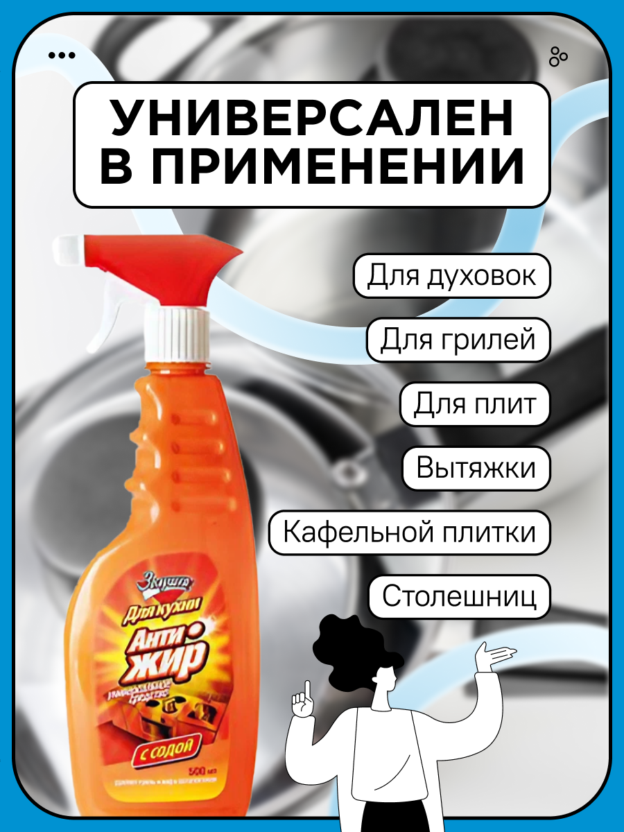 Средство для кухни золушка Антижир с содой триггер 500 мл интересное: