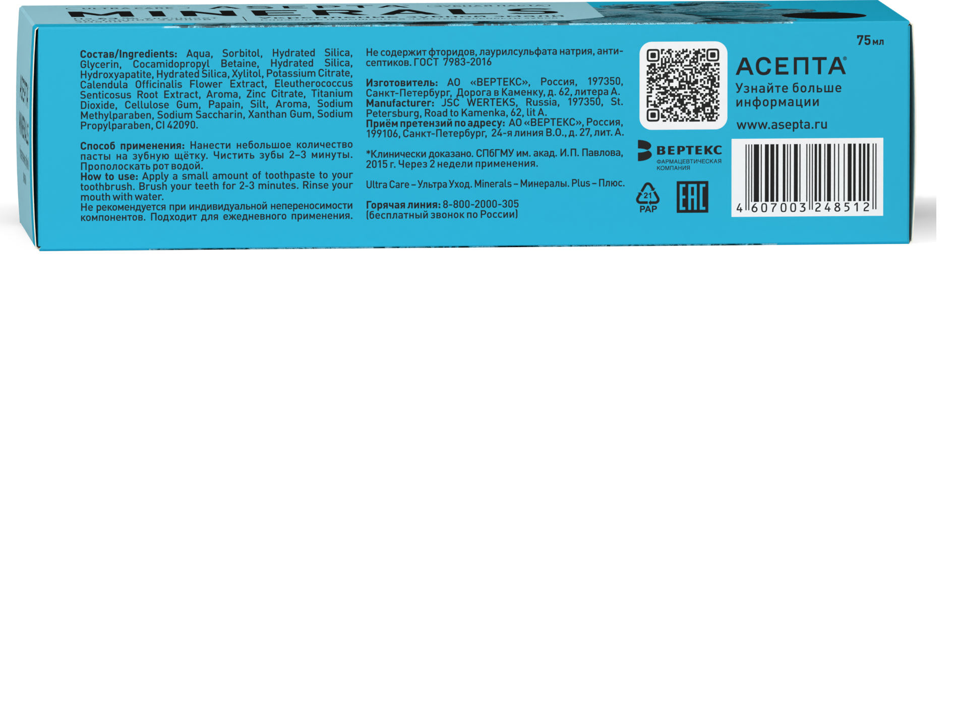 Зубная паста Асепта Plus, реминерализация, 75 мл интересное: