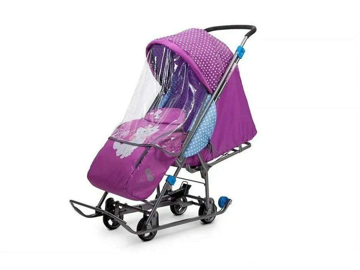 Санки-коляска НД7-6/16 со щенком орхидея /Ника чехол д/ног, колесо, механизм качания