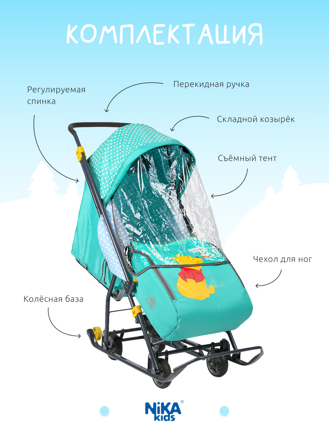 Санки-коляска NIKA Disney Baby 1 (медвежонок винни изумрудный)