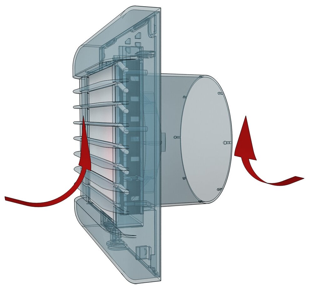 Внутри вентилятора EURO 5A стоит странный девайс коричневого цвета, который при подаче тока сильно нагревается и очень медленно выталкивает шток, который поднимает пластиковые жалюзи. После выключения вентилятора, это устройство, остывая, втягивает шток обратно. В итоге шторки закрываются только через 2 минуты после остановки лопастей. То есть в течении двух минут происходит обратный поток воздуха. Странный конструктив :( |