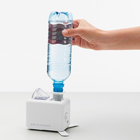 | Отзыв: | В работе данный аппарат около 3 лет покупали за 2600 рублей. Через год так же работает только вода с него течет рекой (вот оно хваленое швейцарское качество !), так что приходится его в большую тарелку ставить, чтобы эти потёки не собирать по всей комнате. Очень маленькая производительность ! Работая сутками в маленькой комнате 9 м2 особой влажности не ощущается. Бутылки 0,6 л с натяжкой хватает на ночь, а если поставить резервуар поболее 1,5 или 2 литра вся эта конструкция завалится. Да и выглядит все это с пластиковой бутылкой сверху не очень эстетично.