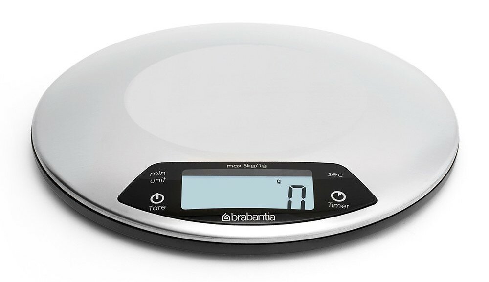 Цифровые кухонные весы круглые стальной матовый Brabantia