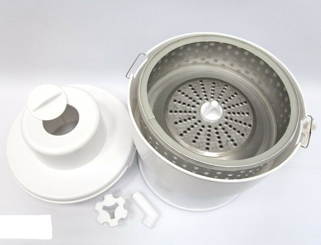 Мы в саду вовремя обработали яблоки от вредителей и урожай получился солидный. Сделали повидло и прочие вкусности, включая добавку яблочного пюре в самодельный кетчуп. Гнали сок, но "Мулинекс" хоть и справлялся с переработкой, но отходы были значительные, подготовка яблок муторная, да и сетку "Мулинекса" приходилось промывать часто, с полной разборкой центрифуги. Увидел на сайте этот аппарат из Пензы. Просчитал все возможные манипуляции и пришёл к выводу: - надо брать! Позвонил в Пензу, благо были коллеги с которыми общался ранее. Узнал цену. Не корректно говорить во сколько она мне обошлась, (потому что был административно-телефонный ресурс), но на момент заказа она стоила в нашем СЗ регионе в 7 -7,5 тыс. руб. Агрегат с достоинством бывшего СССР - отличный! Но! Не для квартирной эксплуатации! Не для плебеев с клееным маникюром и педикюром. Это рабочая лошадка которая реально перерабатывает за час порядка 30-40 кг яблок "Антоновка" или "Мельба", без какой либо предварительной подготовки. На выходе сока реально не менее 50%, а жмых сухой, сразу можно закладывать в грядку или ставить на "кальвадос". Нам эта супер центрифуга очень понравилась. Это аппарат именно для дачи! Реально простой и эффективный! Когда всё под рукой: - и шланг для промывки барабана и ёмкость для сброса жмыха! ... ну и конечно осы, лучшие природные индикаторы качества получившегося сока. Примечание: сетку центрифуги (без разборки, только от жмыха) рекомендую чистить сразу при появлении сильной вибрации. |