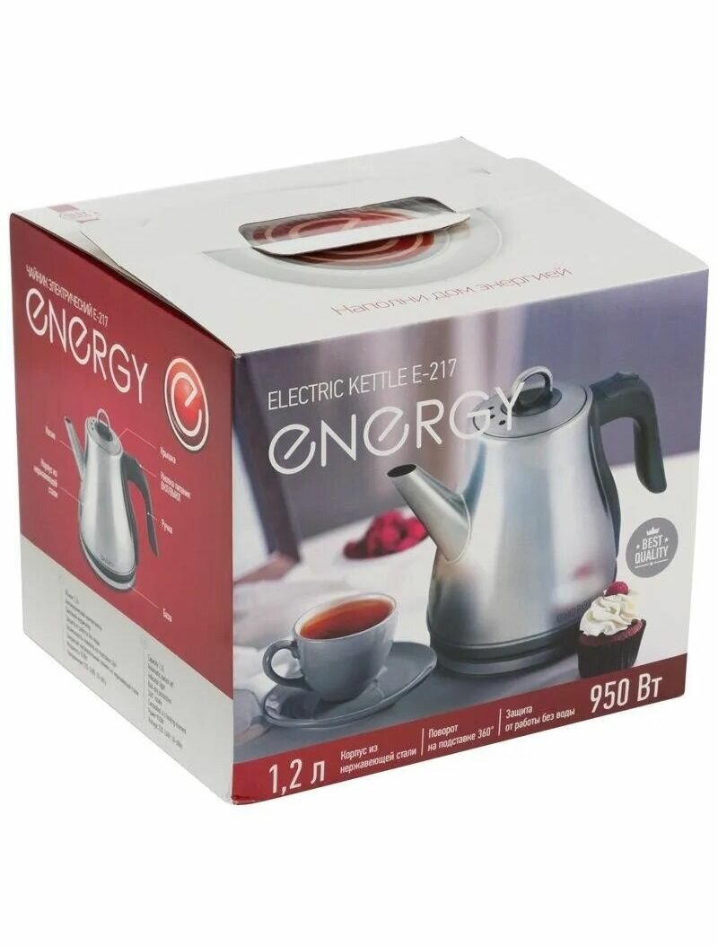 Ниже Вы можете прочитать отзывы на Чайник электрический Energy E-217, металл, 1.2 л, 950 Вт, серебристый, ознакомится с подробными характеристиками, посмотреть интересные обзоры и фотографии на Чайник электрический Energy E-217, металл, 1.2 л, 950 Вт, серебристый.