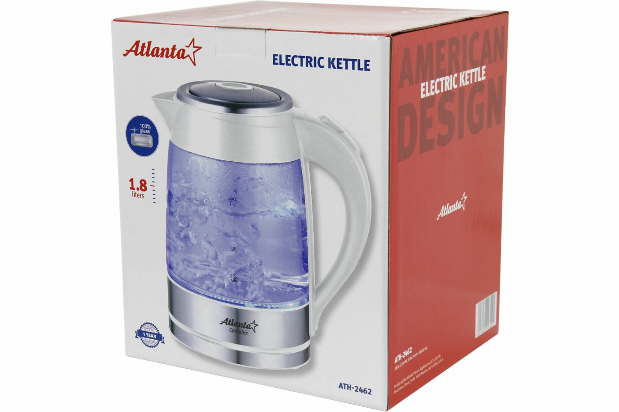ATH-2462 (white) Чайник стеклянный электрический, Atlanta