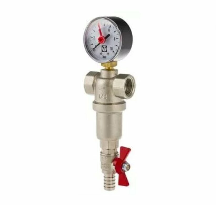 Фильтр самоочищаемый со сливом и манометром 1/2" Valtec VT.389.N.04