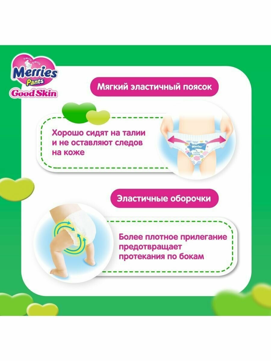 Merries Подгузники-трусики Merries, размер L (9-14 кг), 44 шт.
