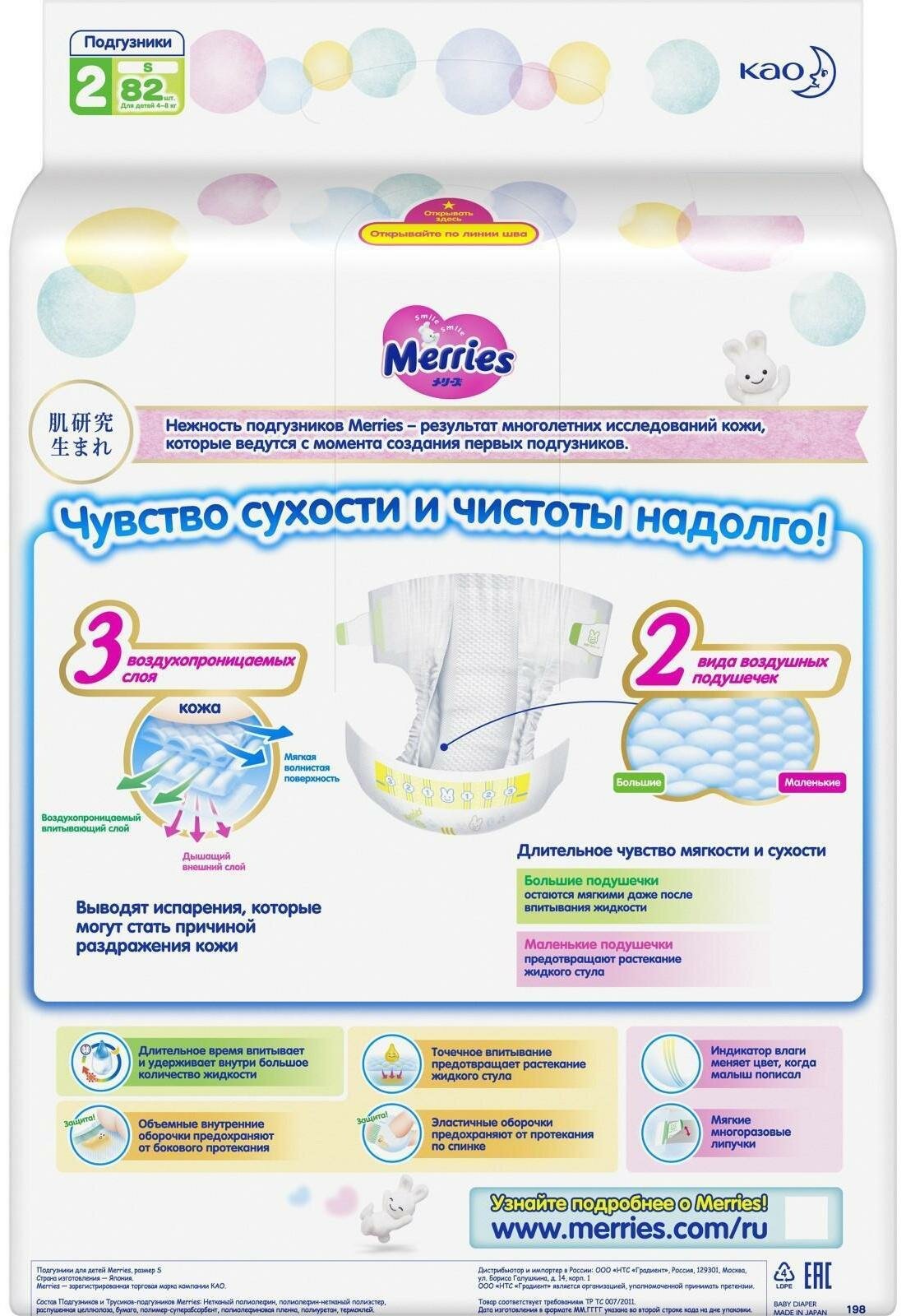 Подгузники Merries S (4-8 кг), 82 шт интересное: