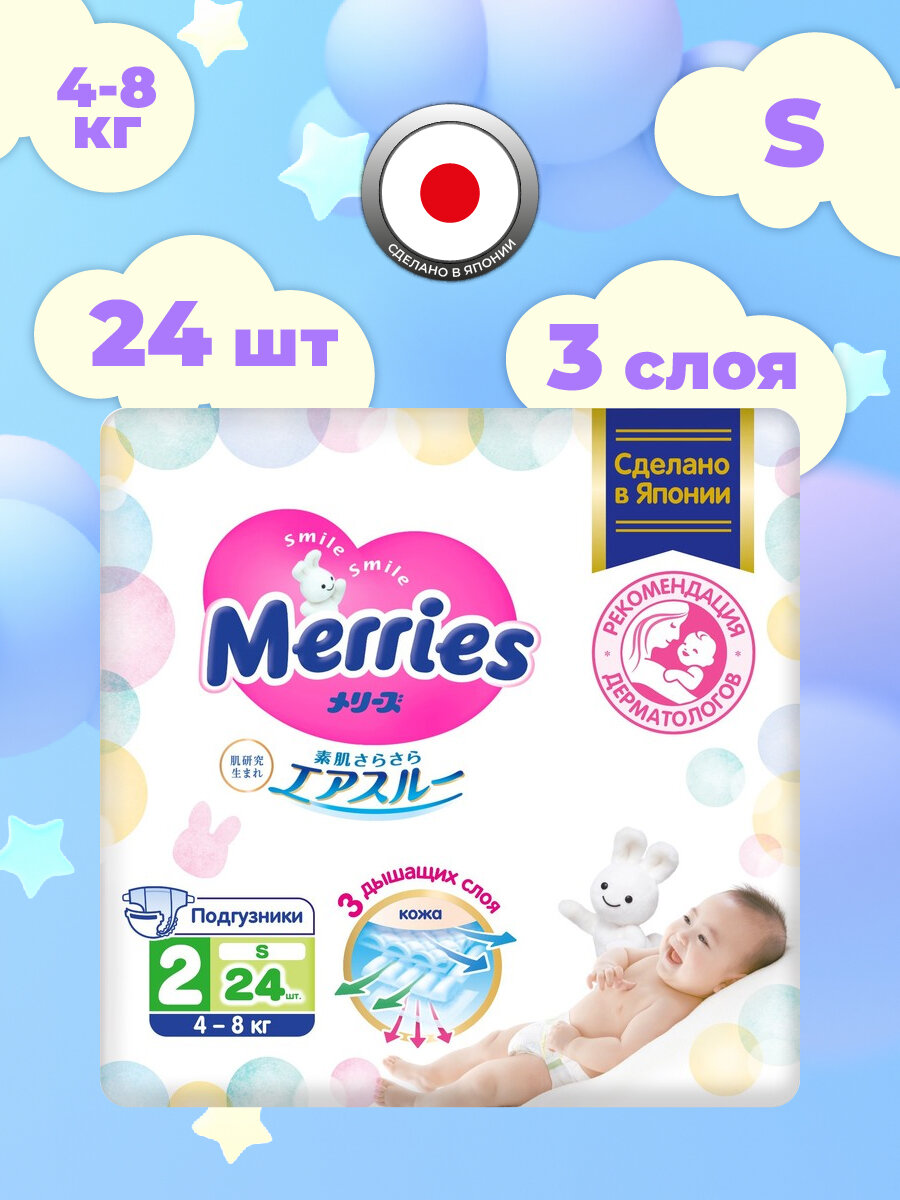 Merries Подгузники детские размер S 4-8 кг, 24 шт. в уп. /