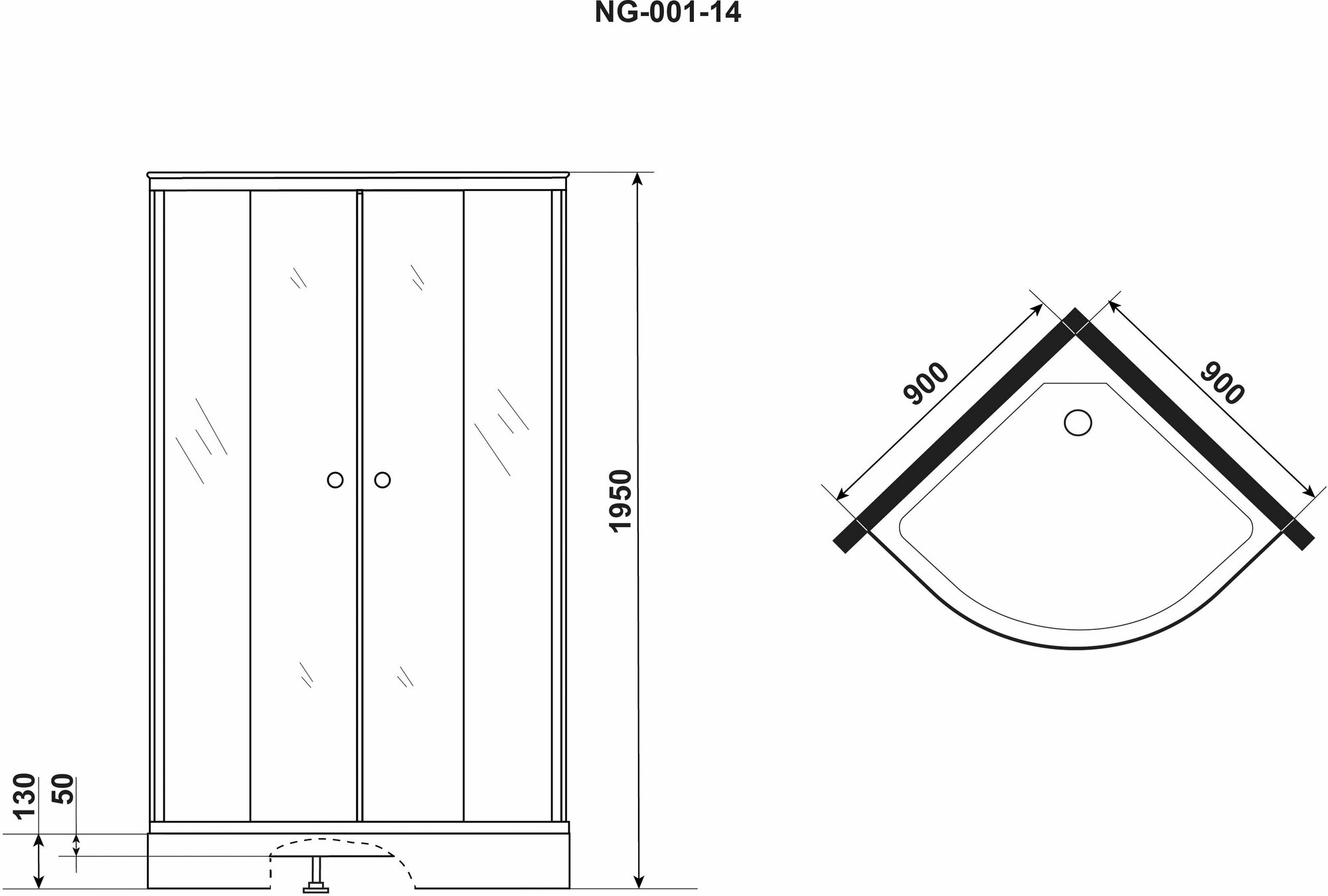 Душевой уголок NG- 001-14 (900х900х1950) низкий поддон(13см) стекло мозаика