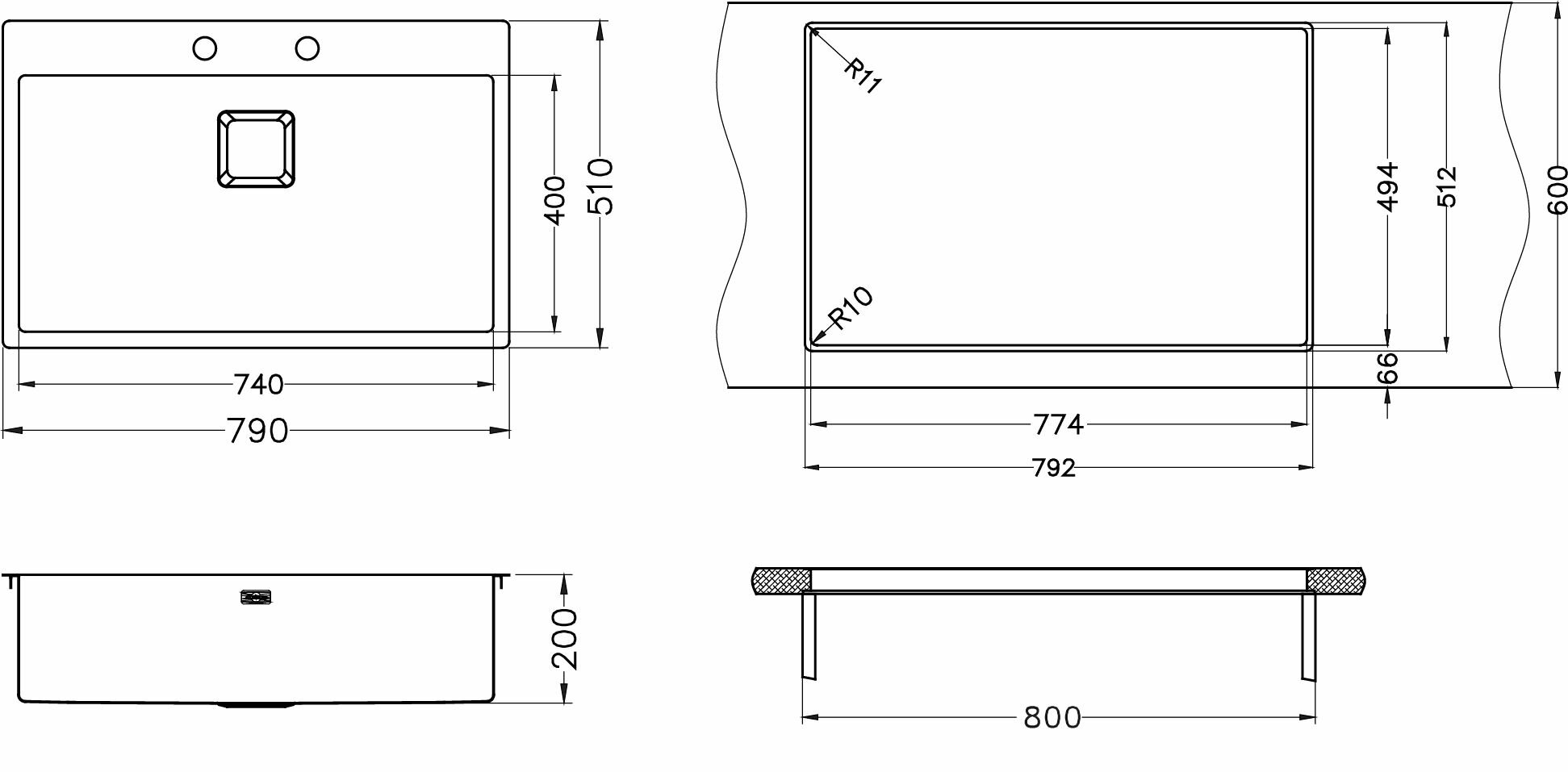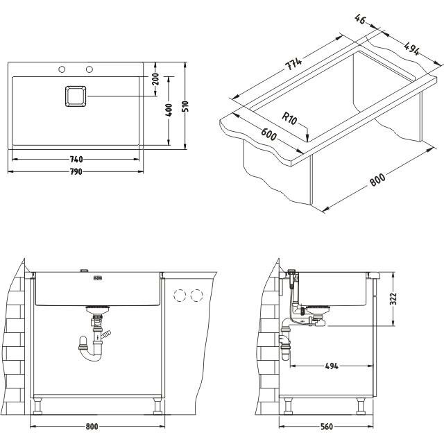 Мойка ALVEUS STYLUX 40 BRS-90 790X510 в компл.с сифоном
