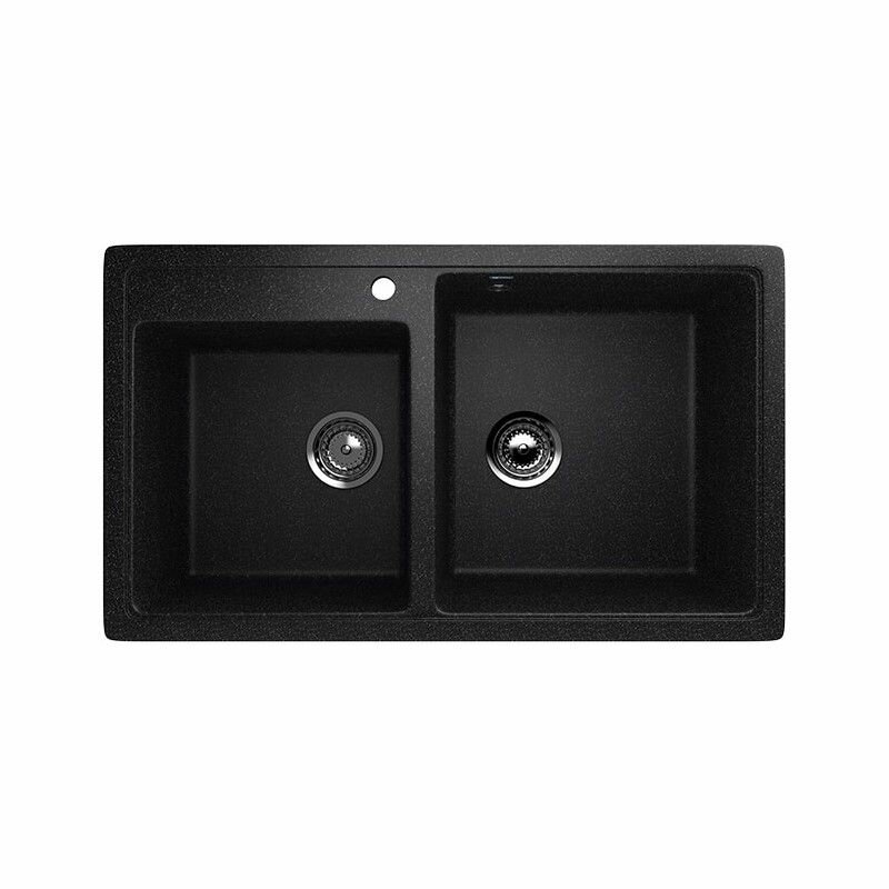Мойка кухонная Ulgran из искусственного мрамора прямоугольная U-200, цвет: ультра-черный, база: 81.5х46 см, арт. U-200-344