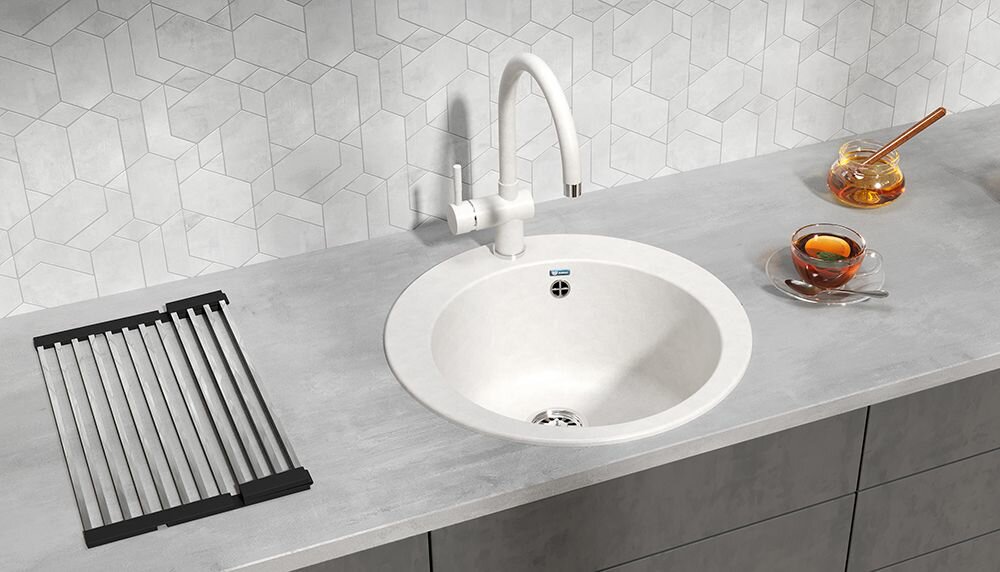 Мойка кухонная Ulgran из искусственного мрамора круглая U-405, цвет: белый, база: 47х47 см, арт. U-405-331