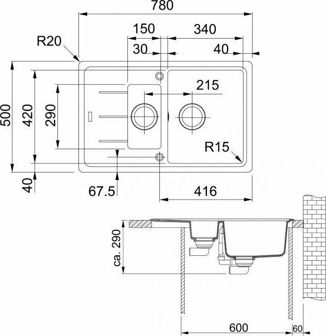Franke Мойка Franke 114.0280.882/ Best, Серия BASIS, Fragranite, BFG 651-78 сахара стоп.