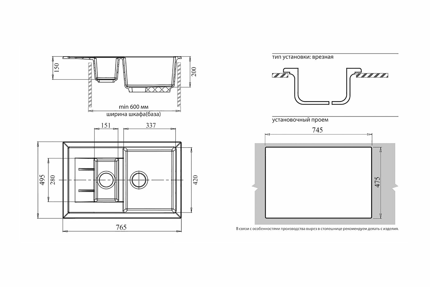 СохранитьМойка GRANFEST GF-Q775KL 1,5 чаши 770*500 мм (черный - 308) интересное: