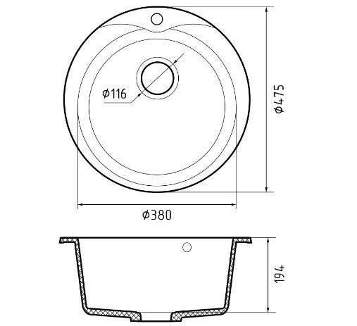 Мойка GRANFEST GF-R480 D =470 мм, круглая (черный - 308)