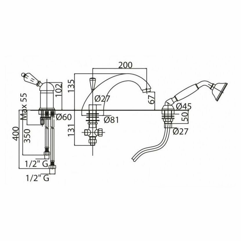 Cezares Смеситель на борт ванной с выдвижным душем и переключателем CEZARES VINTAGE-BVDM-01-Sw