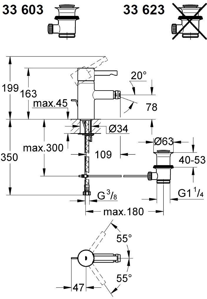 Смеситель для биде GROHE Essence с донным клапаном, хром (33603000)