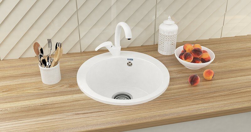 Комплект Мойка кухонная Ulgran U-104-331 белая + Смеситель для кухни Ulgran U-007-331 белый