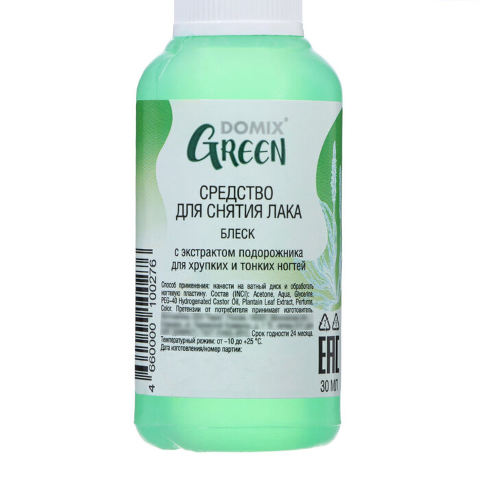 Средство для снятия лака Domix Green "Блеск" с экстрактом подорожника, 30 мл интересное: