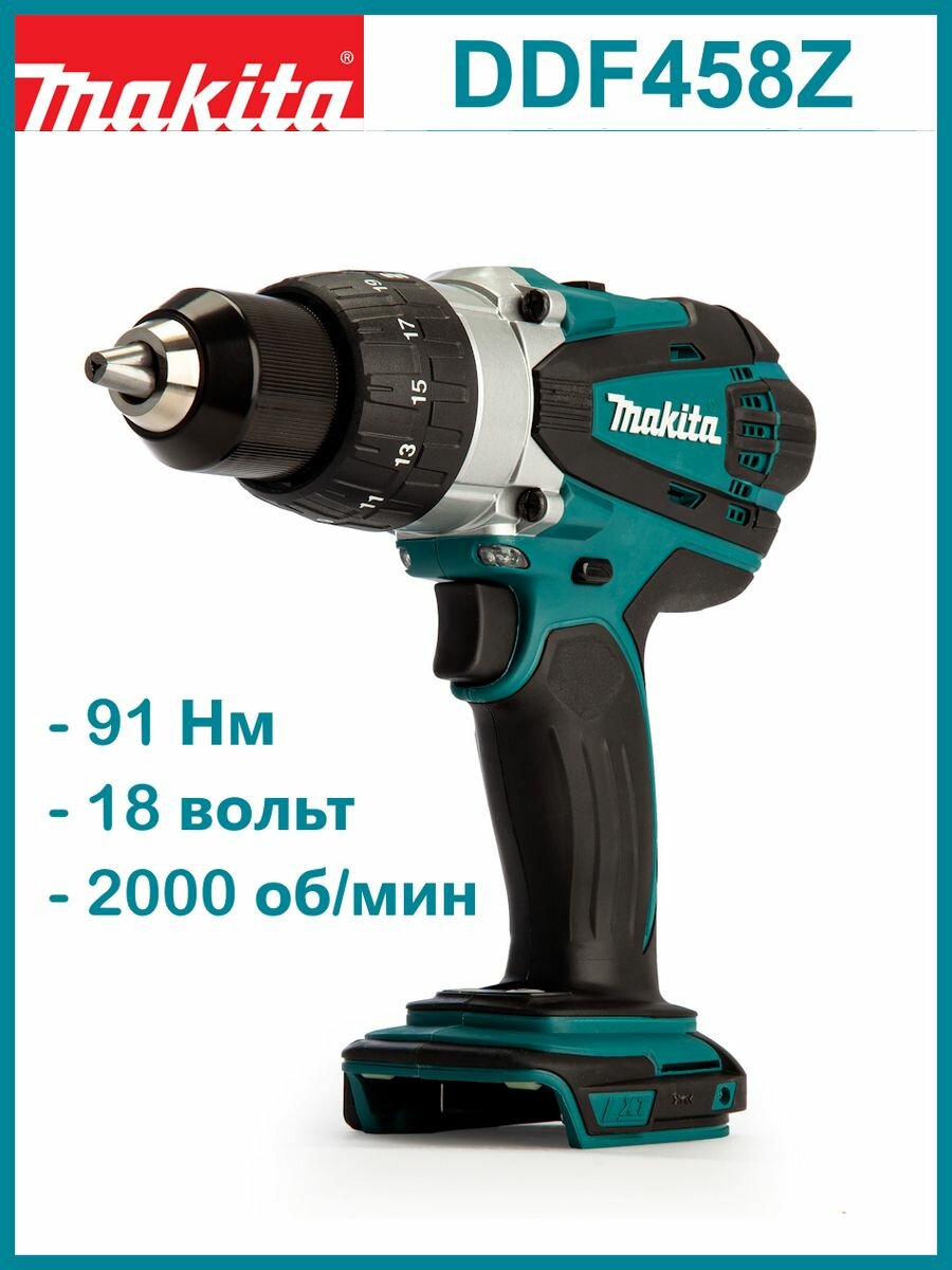Дрель-шуруповерт аккумуляторный 91Нм - Li-ion 18В Makita DDF458Z