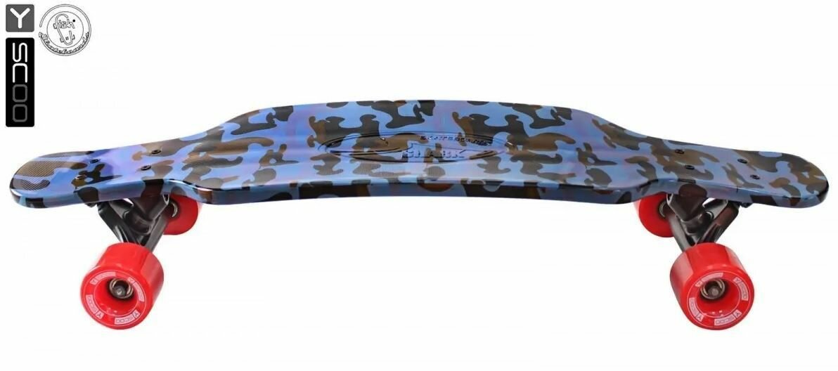 Скейтборд Y-Scoo Longboard Shark Tir 31 дюйм - Blue Army, Blue-red