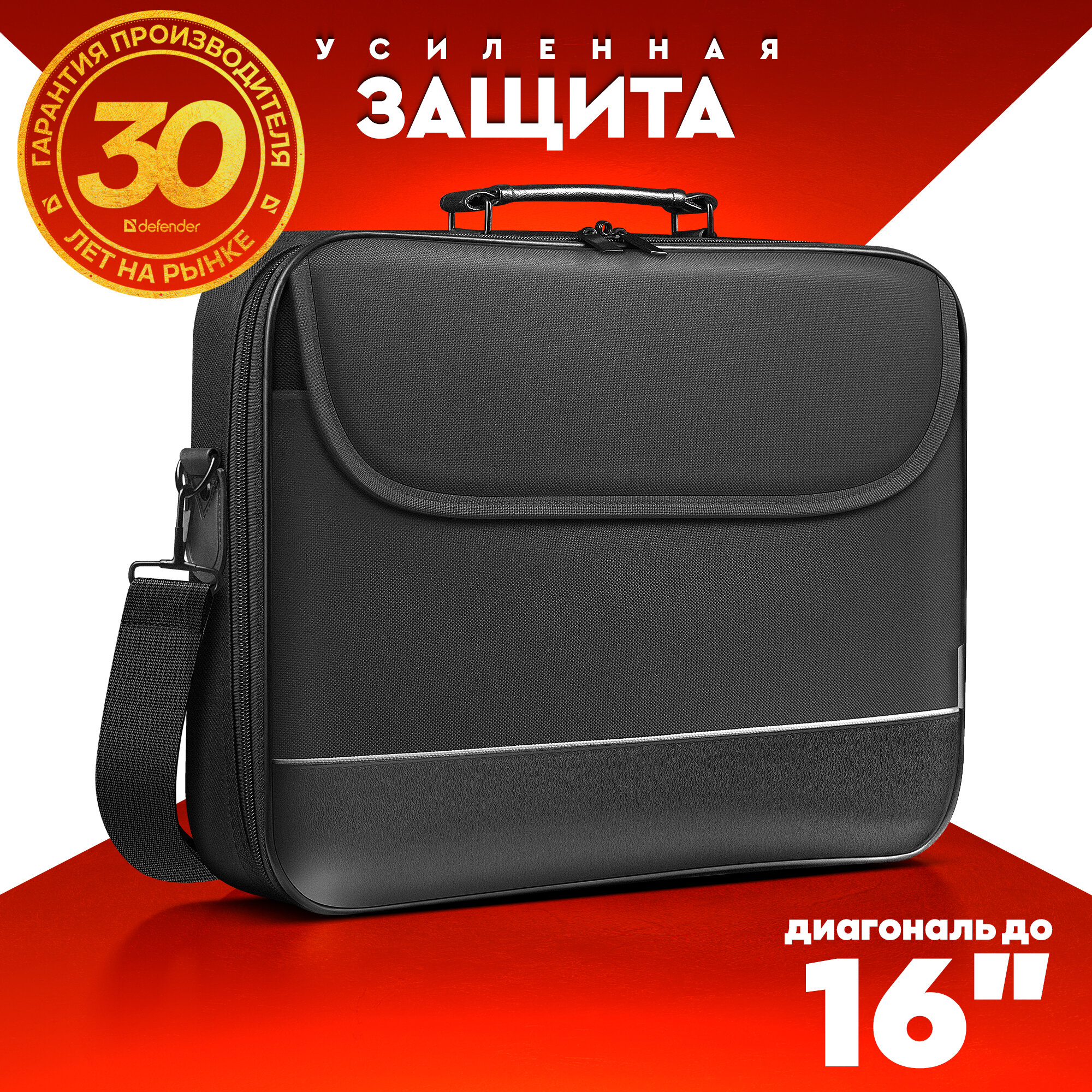 Сумка для ноутбука Defender Ascetic, 15-16", полиэстер, съемный ремень, жесткий каркас, внутренние карманы, черная