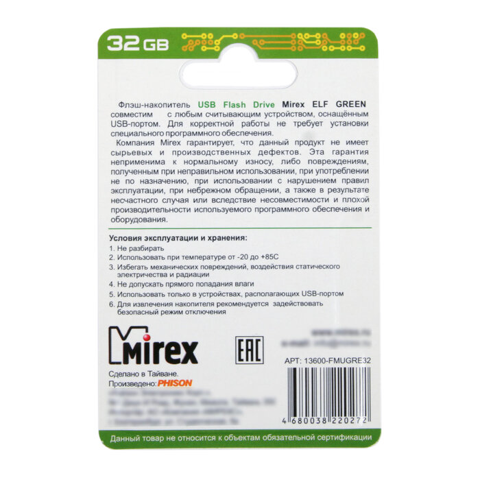 СохранитьUSB Флеш-накопитель MIREX ELF GREEN 32GB интересное: