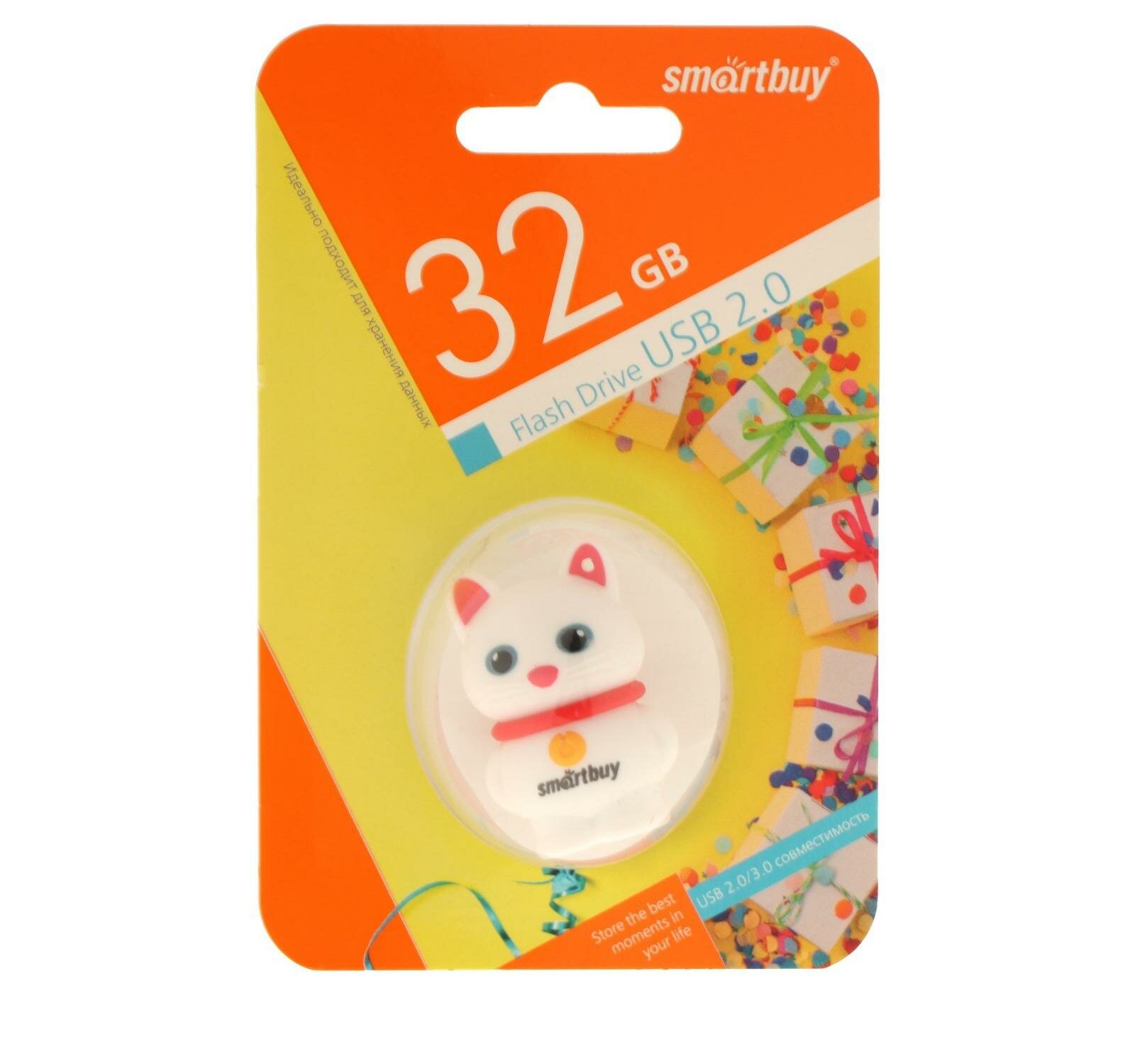 Купить Флешка Smartbuy Wild series"Котенок", 32 Гб, USB 2.0, чт до 25 Мб/с, зап до 15 Мб/с, белая Smartbuy