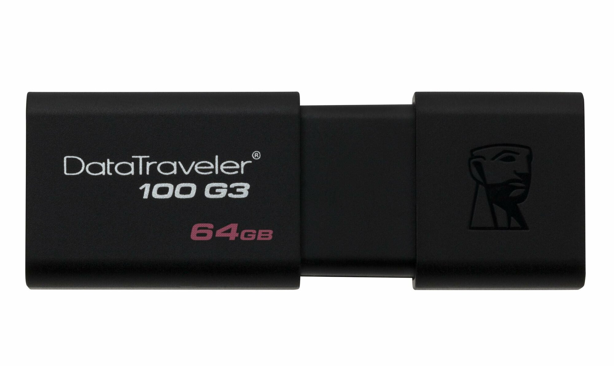 Флешка Kingston DataTraveler 100 G3 64 ГБ, 1 шт., черный