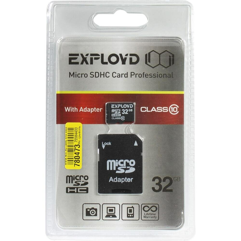 Карта памяти (EXPLOYD MicroSDHC 32GB Class10 + адаптер SD)