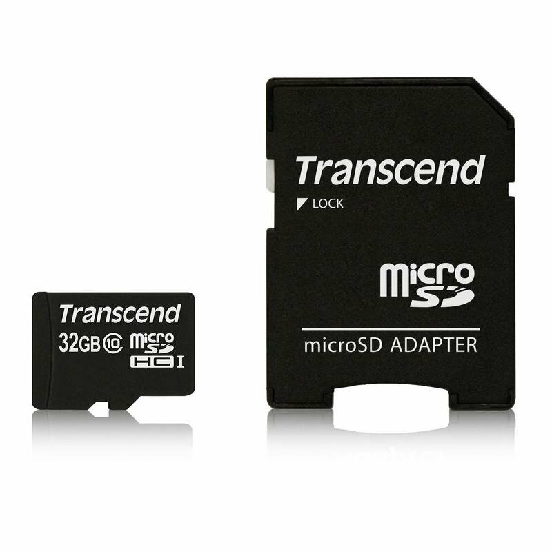 Карта памяти microSDHC Transcend 32Gb, Class 10, TS32GUSDHC10, 1шт., переходник SD (TS32GUSDHC10)