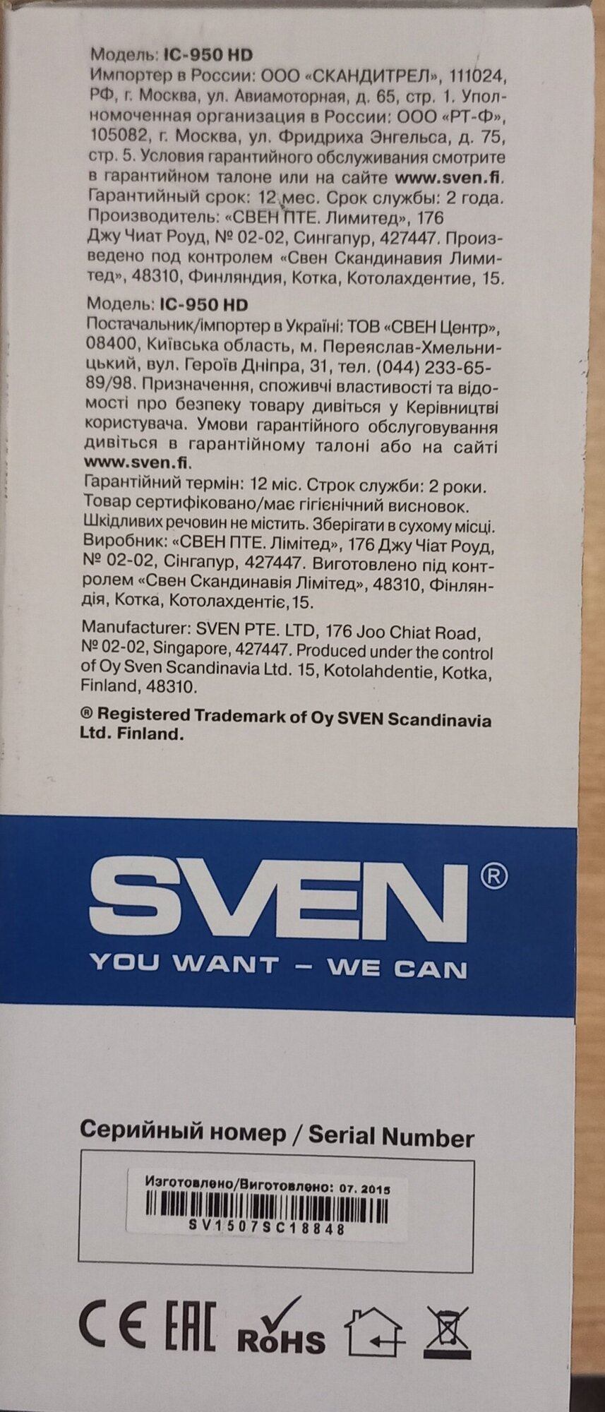 Ниже Вы можете прочитать отзывы на HD веб-камера с микрофоном Sven IC-950 HD, ознакомится с подробными характеристиками, посмотреть интересные обзоры и фотографии на HD веб-камера с микрофоном Sven IC-950 HD.